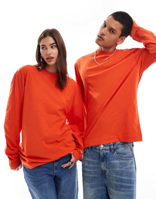 COLLUSION Unisex – Pomarańczowy top skaterski z długimi rękawami