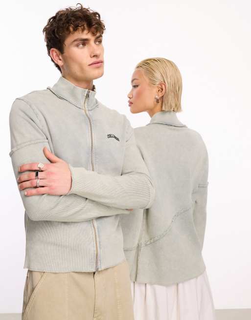 COLLUSION Unisex – Szara zapinana na zamek bluza z kontrastowymi prążkami