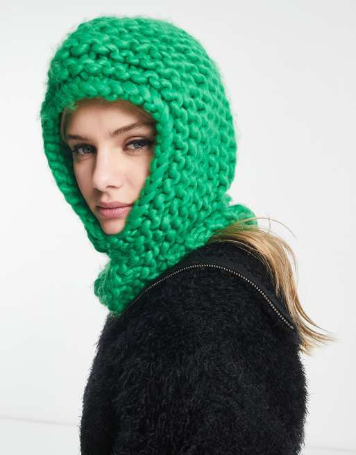 COLLUSION Unisex – Zielona kominiarka z grubej szydełkowanej dzianiny