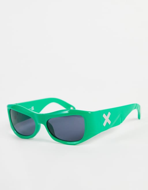COLLUSION Unisex – Zielone ścięte okulary przeciwsłoneczne z logo i wyciętymi wzorami