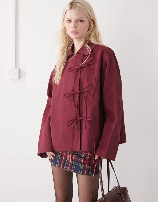COLLUSION – Wiązany na kokardki trencz o krótkim fasonie w kolorze bordowym