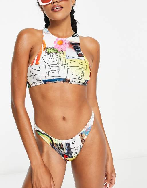 COLLUSION – Wysoko wycięty dół od bikini w kolorowy wzór – MULTI