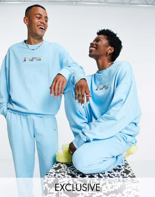 COLLUSION x EXIST LOUDLY Unisex – Niebieska bluza zakładana przez głowę z haftem, część zestawu