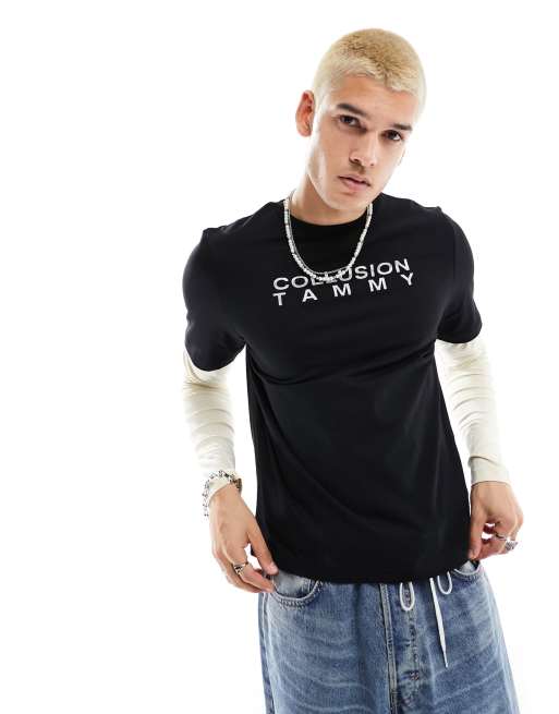 COLLUSION x TAMMY – Czarny top z podwójnymi długimi i krótkimi rękawami
