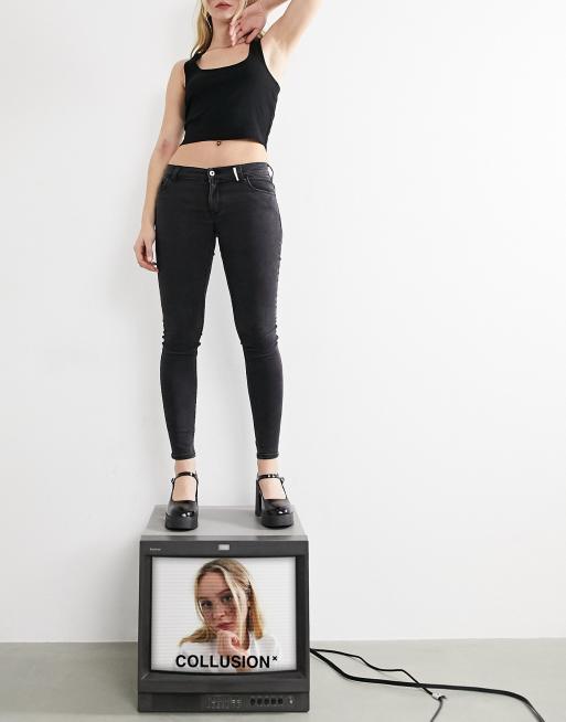 COLLUSION – x001 – Czarne jeansy o obcisłym kroju z obniżonym stanem i efektem sprania