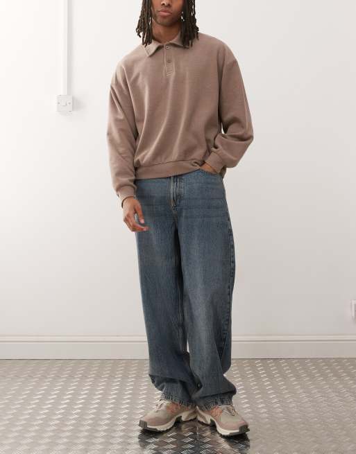 COLLUSION – X001 – Jeansy o luźnym kroju ze średnim stanem w spranym niebieskim marmurkowym kolorze