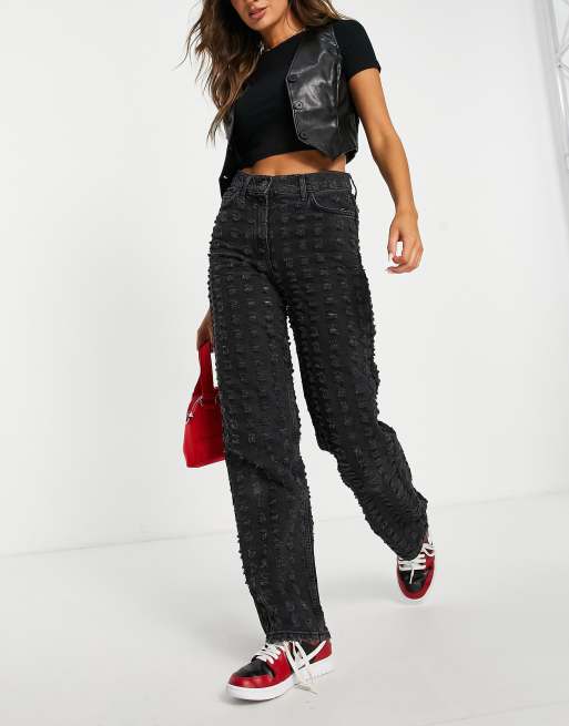COLLUSION – x014 – Czarne jeansy dad fit z dużymi rozdarciami i efektem sprania