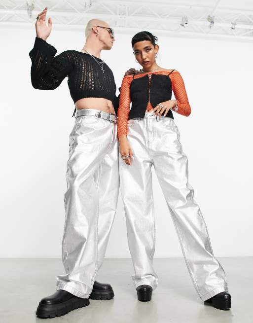 COLLUSION – x014 Unisex – Luźne srebrne jeansy