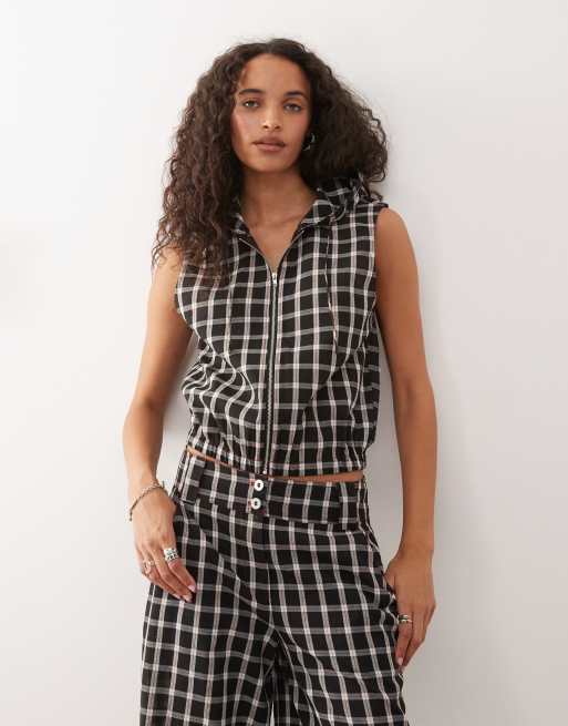 COLLUSION – Zapinany na suwak top z kapturem w kolorową kratkę, część zestawu