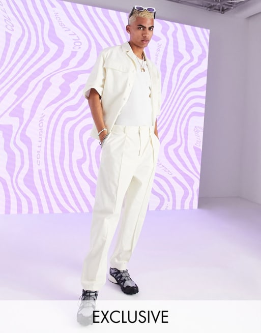 COLLUSION – Zestaw w kolorze ecru z haftem: koszula o pudełkowym kroju i spodnie