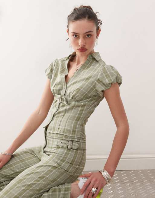 COLLUSION – Zielona elegancka bluzka w kratę w stylu lat 2000.