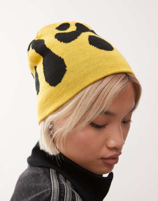 COLLUSION – Żółta czapka beanie z nadrukiem czaszki