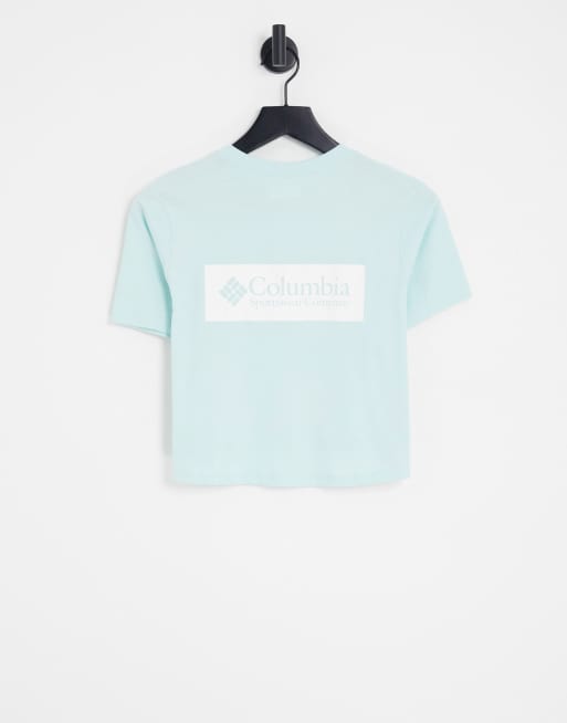 Columbia – CSC River – Jasnoniebieski krótki T-shirt z nadrukiem na plecach – tylko w ASOS