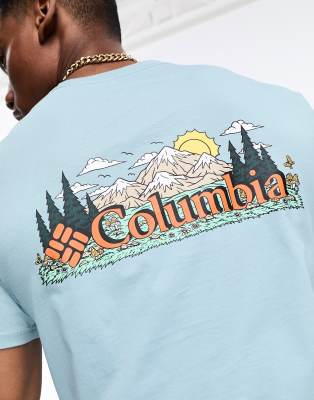 Columbia – Talbert Ridge – Niebieski T-shirt z nadrukiem na plecach – tylko w ASOS