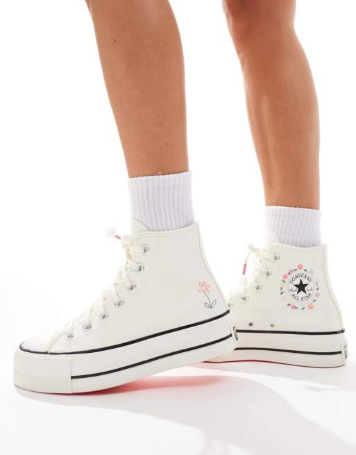 Converse – Chuck Taylor All Star Lift Hi – Białe buty sportowe z haftowanym kwiatowym wzorem
