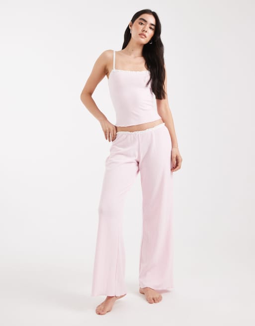 Cotton On – Bladoróżowe spodnie piżamowe z szerokimi nogawkami o waflowej fakturze