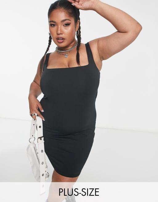 Cotton On Curve – Czarna sukienka midi typu bodycon z dekoltem karo