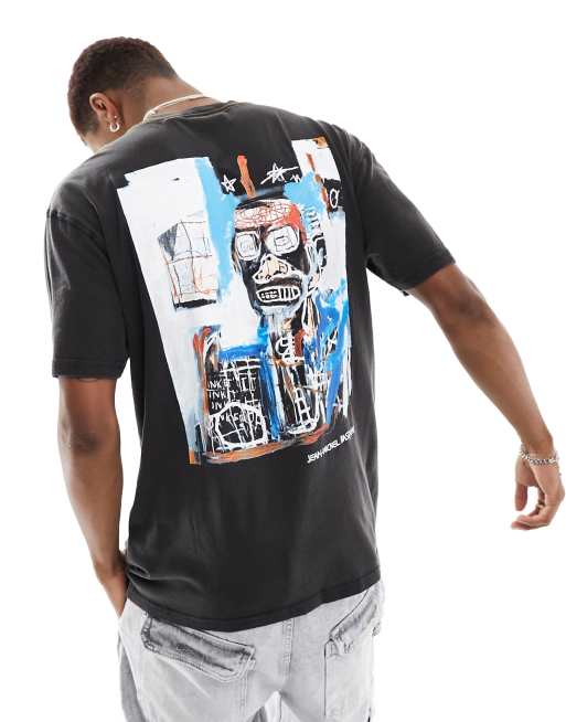 Cotton On – Czarny T-shirt o pudełkowym kroju z motywem pracy Basquiat
