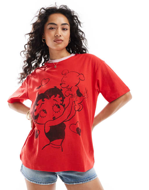 Cotton On – Czerwony luźny T-shirt z motywem Betty Boop