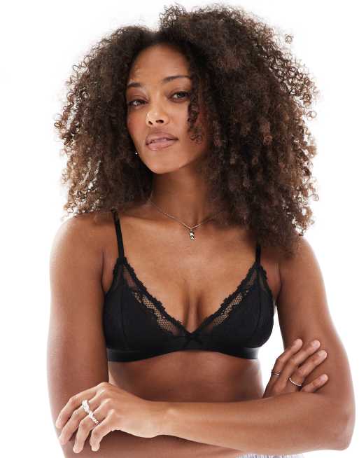 Cotton On – Everyday – Czarna koronkowa braletka z wyściełanymi trójkątnymi miseczkami