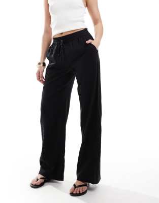 Cotton On – Haven – Czarne spodnie z szerokimi nogawkami z materiału o wyglądzie lnu