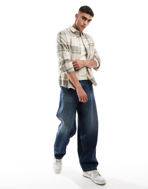 Cotton On – Koszula oversize z długimi rękawami w kratkę w naturalnych kolorach
