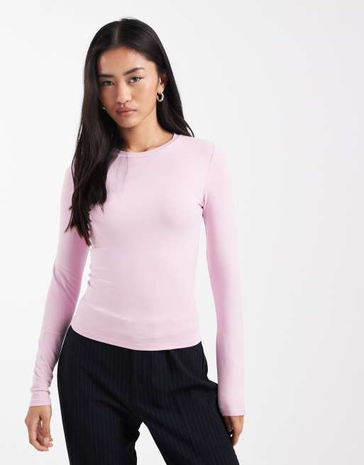 Cotton On – Lawendowy top z długimi rękawami i okrągłym dekoltem