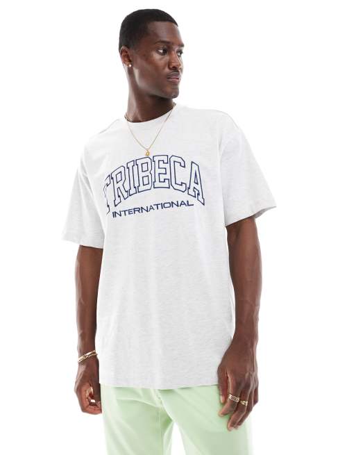 Cotton On – Biały T-shirt o pudełkowym kroju, z napisem „Tribeca International”