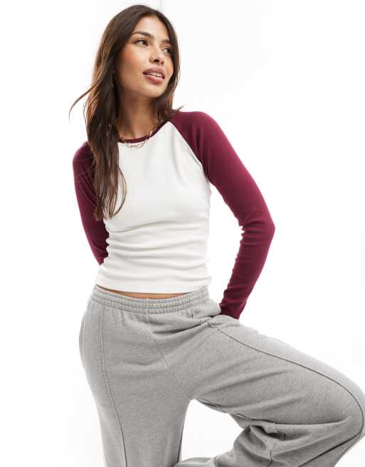 Cotton On – Biały T-shirt z wiśniowymi raglanowymi rękawami