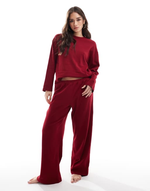 Cotton On – Ciemnoczerwone prążkowane spodnie ażurowe od piżamy, część zestawu