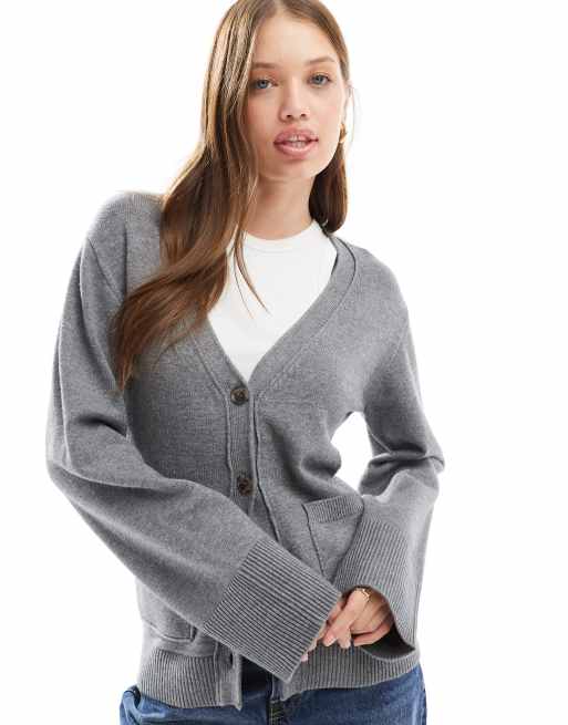 Cotton On – Grafitowy melanżowy kardigan z dekoltem w w kształcie litery V i kieszeniami