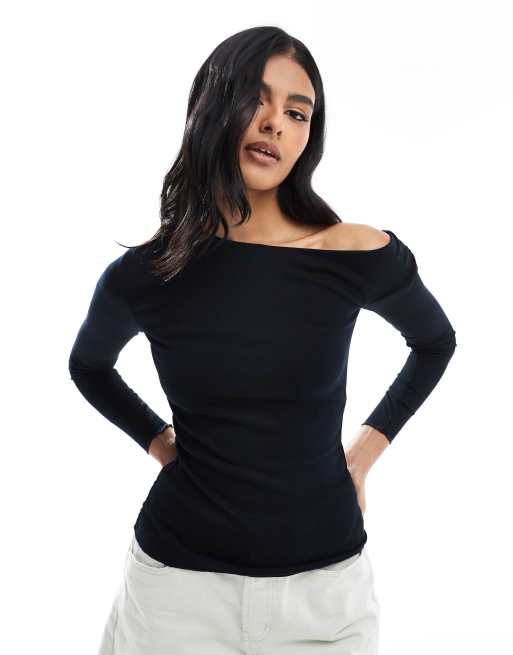 Cotton On – Marlow – Czarny asymetryczny top z długim rękawem
