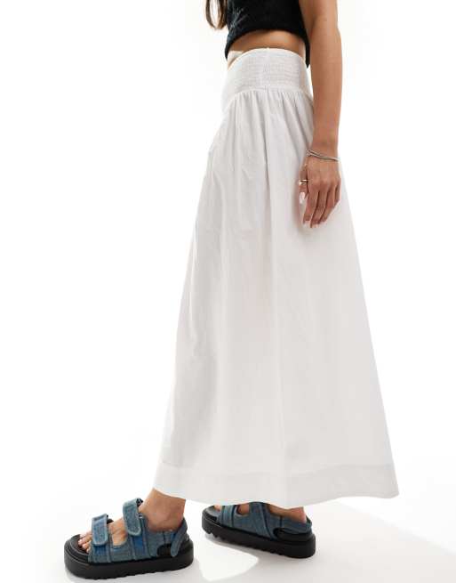 Cotton On – Obszerna biała spódnica maxi z talią w kształcie litery V
