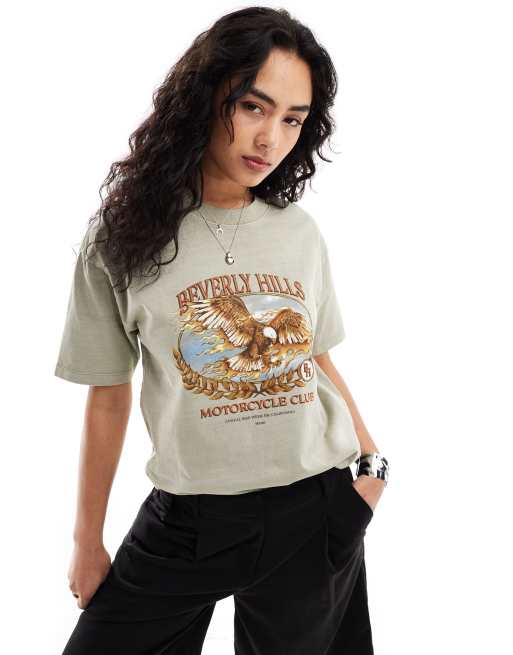 Cotton On – Szałwiowy luźny T-shirt z grafiką z motywem Beverly Hills w stylu retro
