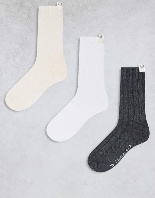 Cotton On – Zestaw 3 par skarpetek w kolorze kremowym, białym i grafitowym z napisem