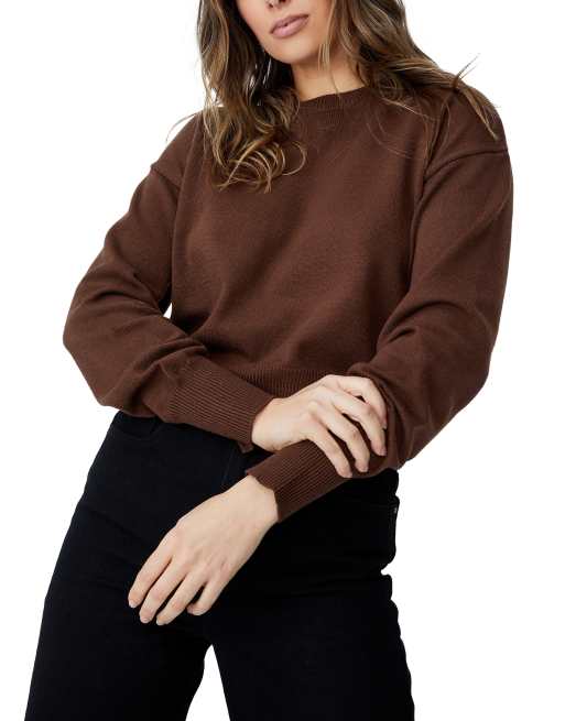 Cotton:On – Brązowy prążkowany sweter z dzianiny