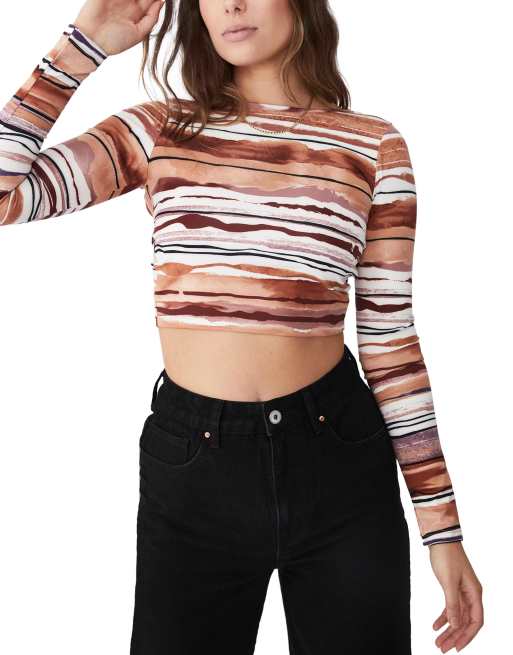 Cotton:On – Kolorowy krótki top z długimi rękawami i wiązaniem na plecach