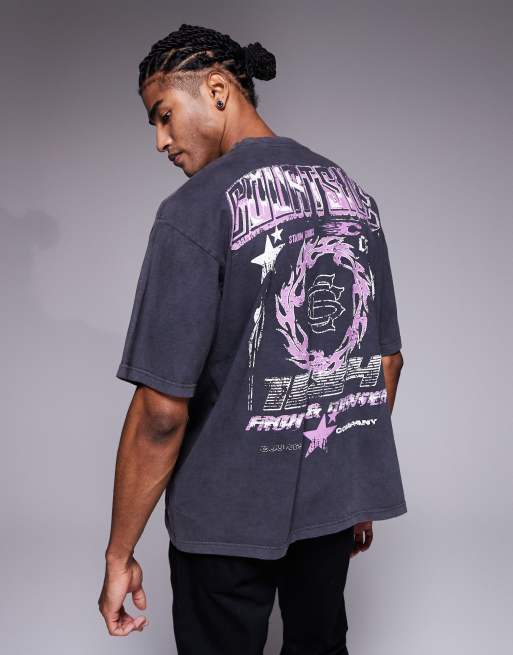 Courtside – Czarny T-shirt oversize z nadrukiem na piersi i plecach