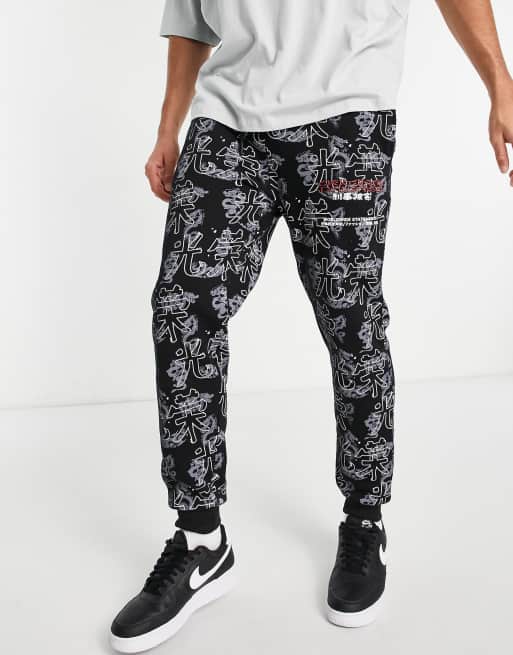 Criminal Damage – Czarne joggersy we wzór na całej powierzchni, część zestawu