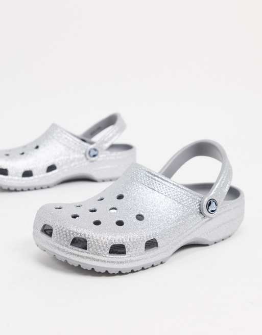 Crocs Classics – brokatowe sandały w kolorze srebrnym