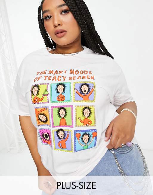 Daisy Street Plus – Biały T-shirt oversize z nadrukiem Moods of Tracy Beaker