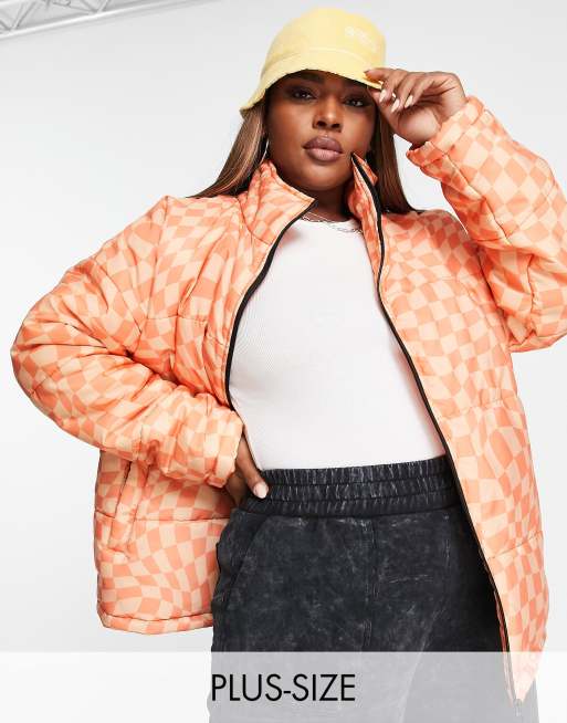 Daisy Street Plus – Kurtka ocieplana o luźnym kroju w pomarańczowy, falowany wzór