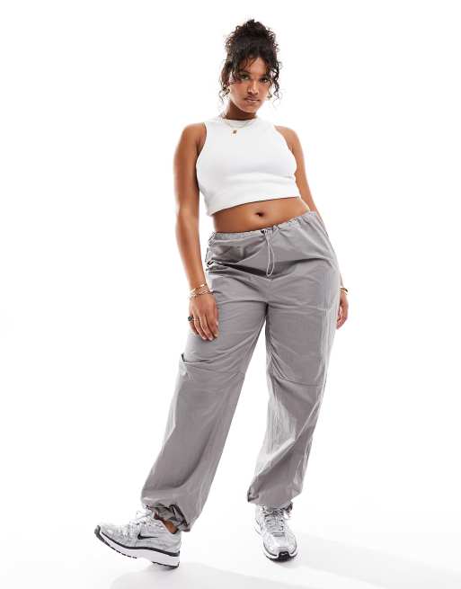 Daisy Street Plus – Srebrnoszare bardzo luźne spodnie ściągane na sznurek