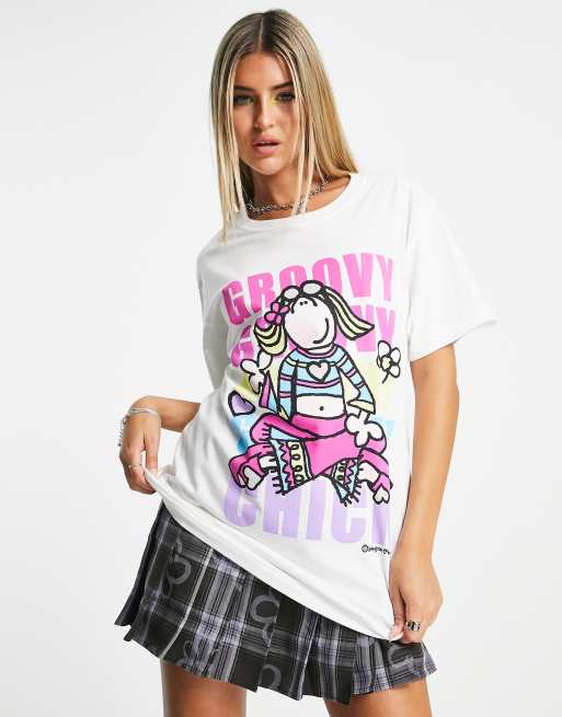 Daisy Street – Biały T-shirt oversize z nadrukiem i napisem „Groovy Chick”
