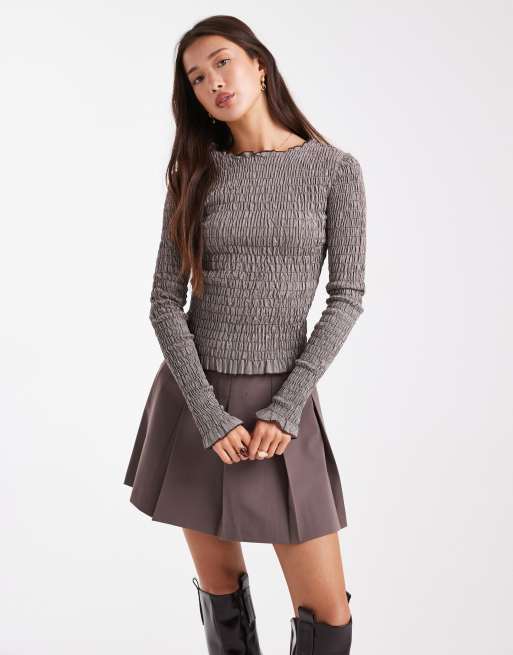 Daisy Street – Brązowy marszczony top w paski z długimi rękawami