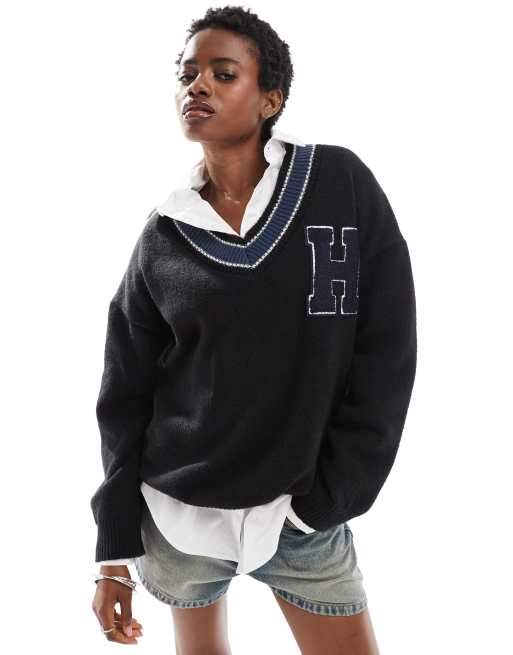 Daisy Street – Dzianinowy sweter z dekoltem w szpic i postrzępionym brzegiem