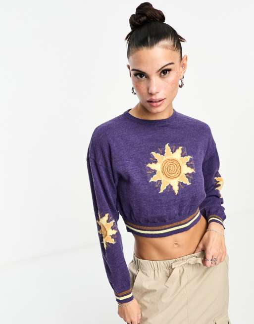 Daisy Street – Krótki sweter dzianinowy z motywem słońca w stylu retro