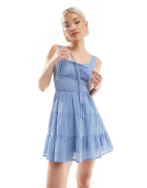 Daisy Street – Niebieska kaskadowa sukienka mini w kratę