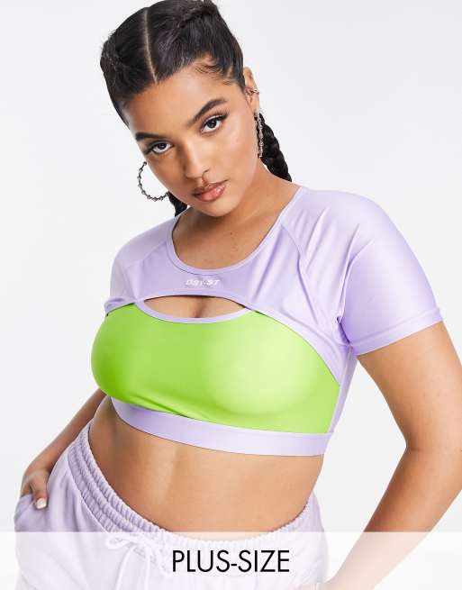 Daisy Street Plus – Active – Liliowo-zielony krótki top z wycięciem