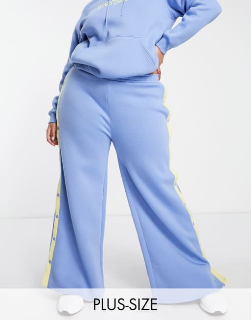 Daisy Street Plus – Active – Niebieskie joggersy z szerokimi nogawkami i zatrzaskami